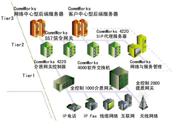 3Com的子公司CommWorks的統(tǒng)一消息方案由兩部分組成:通用信息接收箱功能模塊和通用連接手段。此系統(tǒng)是CommWorks三層體系結(jié)構(gòu)的主要應(yīng)用。CommWorks三層體系結(jié)構(gòu)是一個(gè)多用途的、多服務(wù)平臺(tái),使得服務(wù)商可以成功地升級(jí)他們的網(wǎng)絡(luò)和增加增值服務(wù)。