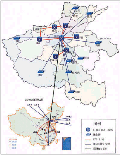 河南省教育科研計算機網(HERNET)作為中國教育科研計算機網絡(CERNET)在河南的省級網絡,提供河南省的教育與科研機構的Internet接入。在CERNET業(yè)已發(fā)展成為中國第二大互聯(lián)網的今天,各省教研網的建設變得尤為重要,河南省在2001年啟動“教育信息化年”規(guī)劃后,多方合作,采用思科系統(tǒng)(中國)網絡技術有限公司的高端網絡設備,將原來骨干帶寬僅為2M的教育科研網升級到2.5G,順利實現了教育科研網絡應用的飛躍性進步,并且真正實現了“三網合一”。