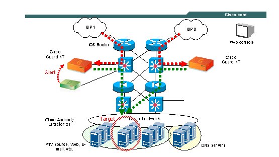 Cisco保護(hù)器(CISCO Guard):Cisco保護(hù)器是Cisco DDoS解決方案套件的基石--它是一個高性能DDoS攻擊緩解設(shè)備,保護(hù)IPTV業(yè)務(wù)中心來的數(shù)據(jù)資源。