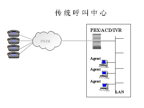 簡單來講,呼叫中心是一個(gè)工作組,它由若干成員組成,這些成員既包括普通的人工座度,也包括一些自動(dòng)語言應(yīng)答設(shè)備(IVR),語音信箱傳真索。‵ax-on-Demand)等。這些成員通過網(wǎng)絡(luò)實(shí)現(xiàn)相互間的通信,并共享網(wǎng)絡(luò)上的資源。