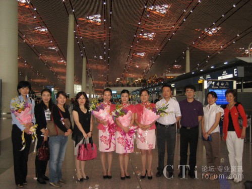 信息導(dǎo)航業(yè)務(wù)中心總經(jīng)理?xiàng)钣、副總?jīng)理魏婕等領(lǐng)導(dǎo)前往機(jī)場(chǎng)送行,中心副總經(jīng)理郝孟堯帶隊(duì)前往韓國。中心領(lǐng)導(dǎo)向三位114話務(wù)員送上了獻(xiàn)花與祝福,希望她們珍惜此次走出國門為世博會(huì)服務(wù)的難得機(jī)會(huì),展現(xiàn)114的風(fēng)采,將北京聯(lián)通114最動(dòng)聽的聲音、最美麗的微笑、最優(yōu)質(zhì)的服務(wù)向世界呈現(xiàn)。三位114話務(wù)員表示,將用純正、專業(yè)的中文綜合信息咨詢服務(wù),讓世界感受到聯(lián)通114的熱情與微笑。
