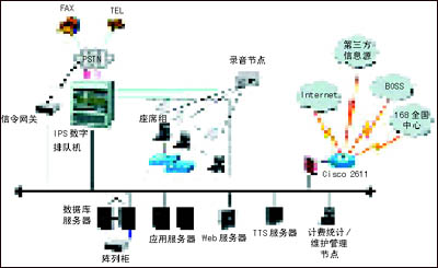 本項(xiàng)目采用新太科技交互式電話會(huì)議系統(tǒng)2.0版,系統(tǒng)各組成部分見圖1。前端接入設(shè)備采用SUNTEK-IPS數(shù)字排隊(duì)機(jī),負(fù)責(zé)多方電話會(huì)議用戶和其他業(yè)務(wù)用戶接入的交換排隊(duì)、自動(dòng)語(yǔ)音資源提供、座席服務(wù)資源提供、錄音、計(jì)費(fèi)等等。SUNTEK-IPS數(shù)字排隊(duì)機(jī)是新太科技最新一代軟交換平臺(tái),是整個(gè)系統(tǒng)平臺(tái)的核心。它綜合了新太科技?xì)v代平臺(tái)的優(yōu)勢(shì),采用世界上最先進(jìn)的軟交換(包交換)技術(shù)和CompactPCI技術(shù),支持主控CPU卡冗余和熱拔插,擁有更大規(guī)模的交換系統(tǒng)總線(CompactPCI的CTBus總線共有4096個(gè)時(shí)隙,理論上,單個(gè)機(jī)框可以支持4k×4k的交換)。SUNTEK-IPS數(shù)字排隊(duì)機(jī)基于自主開發(fā),擁有自主產(chǎn)權(quán),保證了極高的性價(jià)比,已經(jīng)通過了信息產(chǎn)業(yè)部入網(wǎng)認(rèn)證。SUNTEK-IPS數(shù)字排隊(duì)機(jī)現(xiàn)已在十多個(gè)省成功開展全省業(yè)務(wù)的事實(shí),證明了它具備技術(shù)先進(jìn)、可靠性強(qiáng)等特點(diǎn)。