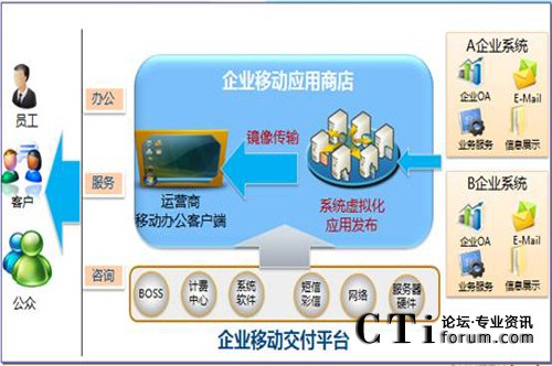 如果在政府或企業(yè)在內(nèi)網(wǎng)部署“移動(dòng)應(yīng)用交付平臺(tái)”,即可充分利用現(xiàn)有運(yùn)營商網(wǎng)絡(luò)渠道服務(wù)的能力,從而實(shí)現(xiàn)政府或企業(yè)的“移動(dòng)辦公”要求。