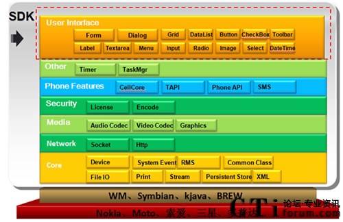 據(jù)新太科技內(nèi)部相關人員介紹,mWAY的技術架構(gòu),一方面可以支持電信網(wǎng)絡各種各樣的接入,保證和運營商已有的網(wǎng)絡的互聯(lián)互通,同時也支持和移動互聯(lián)網(wǎng)手機之間的連接,支持相關音頻、視頻的呼叫、傳送。業(yè)務接口可以給第三方應對研發(fā)需求,手機終端有相關的引擎,滿足手機終端的業(yè)務研發(fā)的需求,這部分有一個手機客戶端軟件,是一個移動性的引擎。這個引擎移植在手機終端客戶端上,給上層提供統(tǒng)一的解析開放系統(tǒng)。