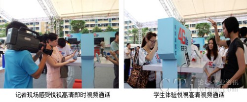 這次在廣州大學(xué)城開展的發(fā)布會(huì),吸引了很多在校大學(xué)生的參加,下圖是記者和學(xué)生現(xiàn)場體驗(yàn)通過悅視高清視頻通話玩即時(shí)猜拳游戲,傳輸?shù)乃挟嬅娣浅G逦鲿,悅視產(chǎn)品的優(yōu)質(zhì)體驗(yàn)讓人享受無線高質(zhì)量流媒體服務(wù)的同時(shí)深刻感受到TD-LTE高帶寬、低時(shí)延的優(yōu)勢。