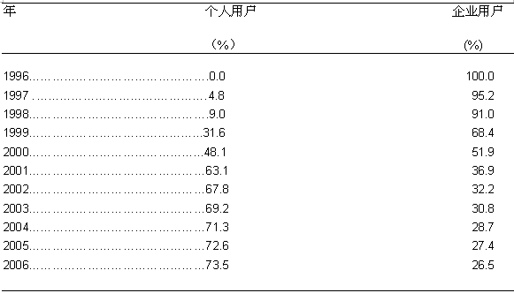 圖三: 美國DSL接入服務(wù)市場企業(yè)和個人用戶的發(fā)展趨勢