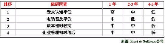 表三羅列了制約中國(guó)外包呼叫中心服務(wù)市場(chǎng)發(fā)展的主要因素。
