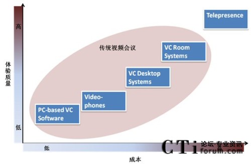 & Sullivan 咨詢顧問楊梅從體驗質(zhì)量及成本兩個緯度對目前市場上的視頻會議系統(tǒng)產(chǎn)品進行了深入比較,發(fā)現(xiàn)網(wǎng)真在體驗質(zhì)量上要明顯高于其他產(chǎn)品,然而其在部署成本上同樣要高于其它產(chǎn)品,這也是目前網(wǎng)真產(chǎn)品推廣中遇到的較大問題。如何能使客戶真正了解建立虛擬互動社區(qū)的需求,如何從貴族化走向平民化成為其蓬勃發(fā)展的關(guān)鍵。
