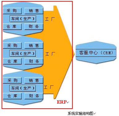 比如在家電行業(yè),服務自動化(任務派發(fā),備件管理,費用管理等),涉及到人,財,物的事務處理等顯得尤其急迫。家電企業(yè)下面一般都有各種生產(chǎn)不同產(chǎn)品的工廠,每個工廠都是獨立核算的生產(chǎn)單位,它下屬了主管生產(chǎn)的車間,負責原材料來源的采購部門,存儲原材料的倉庫,獨立核算的財務部門,負責銷售該工廠產(chǎn)品的銷售部門等。通過在這些工廠內部實施ERP系統(tǒng),可以將家電企業(yè)的生產(chǎn),供銷,財務,配件等部門的工作流程優(yōu)化整合起來,而客服中心是獨立核算的部門,它負責全部產(chǎn)品的維修,投訴,客戶關懷,市場調查等,可以在客服中心實施CRM系統(tǒng)來實現(xiàn)服務自動化以及客戶關系管理的功能。
