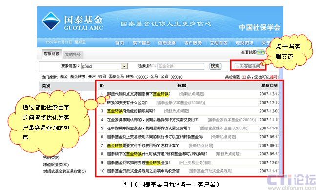國泰基金成立于1998年3月5日,是國內(nèi)按照規(guī)范化要求成立的首批基金管理公司之一,注冊資本為1.1億,總部位于上海。贏得了包括封閉式和開放式基金近150萬持有人的信任,成為了一家市場信譽(yù)良好、具有較高知名度的專業(yè)證券投資管理公司,得到社會(huì)中介機(jī)構(gòu)的諸多肯定。日前,該公司運(yùn)用53IQ客戶自助服務(wù)系統(tǒng),進(jìn)一步拓展客戶服務(wù)方式,實(shí)現(xiàn)了先進(jìn)的客戶關(guān)系管理。