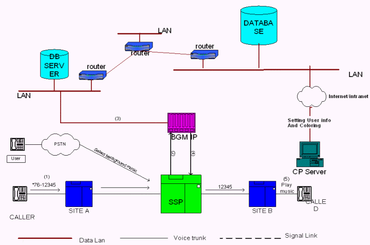 1、(圖一)用戶(hù)撥打?qū)Ψ教?hào)碼的時(shí)候,只要先撥打"*76",然后撥被叫號(hào)碼,通話(huà)建立以后,該通話(huà)會(huì)有用戶(hù)所定義的背景音樂(lè),如果用戶(hù)不撥"*76", 那么該通話(huà)將和普通通話(huà)效果一樣,沒(méi)有背景音樂(lè)。