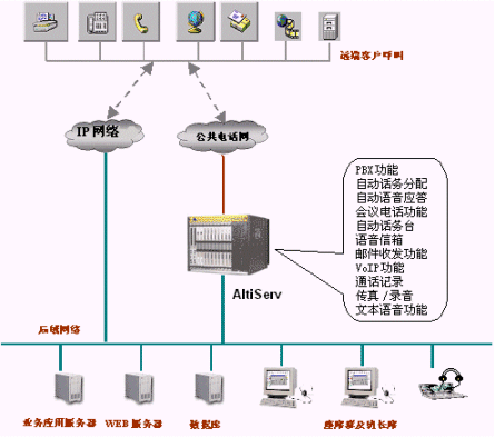 呼叫中心所有常用功能都通過(guò)一體化的奧迪堅(jiān)通訊服務(wù)器Compact PCI 實(shí)現(xiàn),并配以強(qiáng)大的核心軟件Altiware對(duì)系統(tǒng)進(jìn)行全面的控制和管理。信息系統(tǒng)管理人員可以輕松學(xué)會(huì)和兼任管理和維護(hù)呼叫中心系統(tǒng)的任務(wù)。