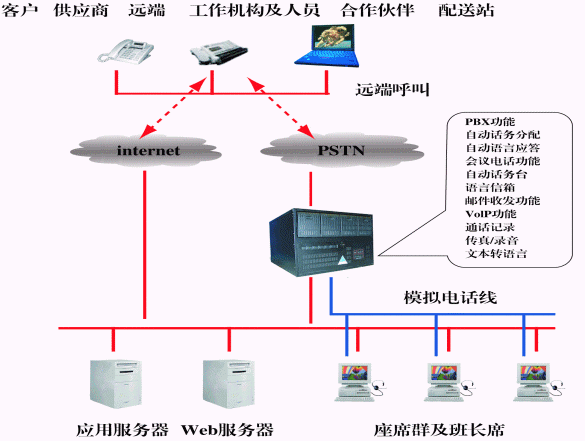 現(xiàn)代物流企業(yè)與以往的物流企業(yè)不同,不僅僅局限于物流中的某一個環(huán)節(jié),而是普遍采用了信息化管理技術(shù),如ERP、物流管理(LM)、SCM等應(yīng)用系統(tǒng),并通過Internet將遍布在各地的物流中心與客戶連接起來,形成一個高效率的物流配送網(wǎng)絡(luò)。建立在奧迪堅基于IP的分布式呼叫中心平臺上的客戶服務(wù)系統(tǒng),以IP技術(shù)為核心在網(wǎng)絡(luò)上構(gòu)建一個語音和數(shù)據(jù)的統(tǒng)一平臺,在一臺服務(wù)器上融合了CTI、PBX、ACD、VoIP、Voice、Mail,Recording,Call Routing等技術(shù)和應(yīng)用,實現(xiàn)網(wǎng)絡(luò)時代高效通訊所需所有常用功能。同時憑借其高度的靈活性和柔韌性,可以無縫地嵌入物流配送網(wǎng)絡(luò)的各個環(huán)節(jié),成為真正滿足現(xiàn)代物流企業(yè)需要的綜合性服務(wù)和營運(yùn)中心,無論在世界的哪個角落,遠(yuǎn)程IP座席和分布的異地機(jī)構(gòu)都可以共享所有資源(語音、數(shù)據(jù)、座席),真正實現(xiàn)一個高效的、信息共享的分布式呼叫中心系統(tǒng)。