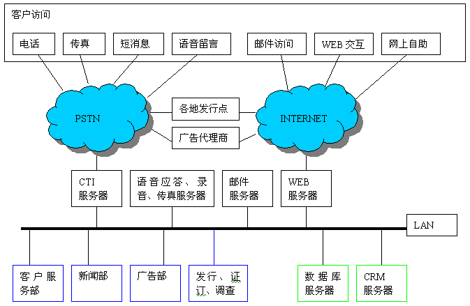 大多數(shù)媒體單位都提供自己的新聞線索熱線電話,廣告熱線電話,許多媒體擁有自己的宣傳網(wǎng)站,有的媒體單位率先建立起呼叫中心,提供7*24的服務(wù)。有些觀點錯誤地認為CRM是呼叫中心的附屬品,因而不能充分發(fā)揮CRM的強大功效,讓整個單位以客戶為中心協(xié)同運作,提高競爭力。
