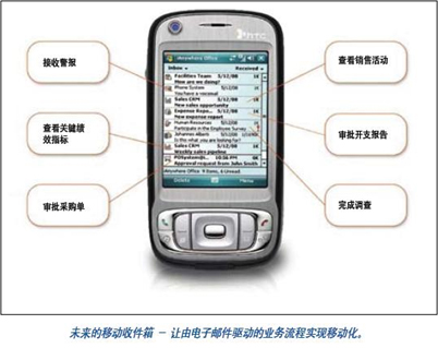 目前,無(wú)線電子郵件已經(jīng)成為最受移動(dòng)設(shè)備用戶歡迎的應(yīng)用:它是一種簡(jiǎn)單而高效的方法,工作人員可以隨時(shí)隨地保持聯(lián)系,進(jìn)行溝通。然而,要讓工作人員在戶外保持像使用臺(tái)式計(jì)算機(jī)那樣的效率,無(wú)線電子郵件僅僅邁出了第一步。全天候的移動(dòng)執(zhí)行力要求即使員工不在辦公室,也必須保證業(yè)務(wù)的連續(xù)性。由電子郵件驅(qū)動(dòng)的業(yè)務(wù)流程,例如采購(gòu)單、銷售訂單審批或租用申請(qǐng)都需要迅捷的行動(dòng),但目前這些流程只能借助臺(tái)式或便攜式計(jì)算機(jī)來(lái)完成。