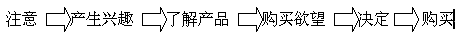 另外在其它的銷售渠道上,如電視、廣播、報紙等,他們對市場目標(biāo)的準(zhǔn)確度都是不高的,因為這樣的原因,也無法對目標(biāo)市場作掌控和測試,雖然他們可以很快速的擴展市場,對市場產(chǎn)生很大的響應(yīng)力,但如果沒有很好的市場營銷與品牌整體性和長期性規(guī)劃,也很快的會變成曇花一現(xiàn),歷史中的記憶,這些渠道的成本也是最高的,所以不是所有的企業(yè)都能一體適用的,尤其是中小型企業(yè)是無法長期負(fù)擔(dān)的。誠如在之前的文章里面分析所講的,最好的銷售效果是一拉一推的力量,用多媒體感官性及理性的獲取消費者的注意力,再配合快速效能的主動銷售,往往能將營銷的效果提升到最高的層面。將到這兒,就不得不順帶提到消費者購買的行為模式。我們將消費者對購買的心理和行為分為幾個階段: