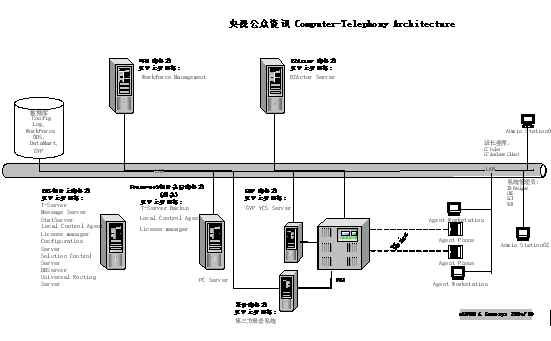 改建后的CCTV公眾資訊中心系統(tǒng),配置了帶冗余備份的Genesys Framework基本平臺(tái)及ERS企業(yè)路由解決方案、WFM人力資源管理解決方案、GVP自動(dòng)語音應(yīng)答解決方案和EZactor呼叫中心CRM平臺(tái)。