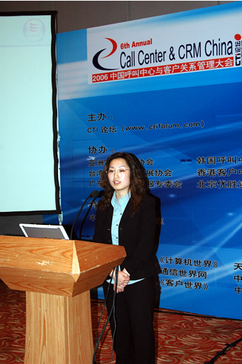 2006年4月3日至5日,2006中國呼叫中心與客戶關系管理大會在北京國際會議中心隆重召開,以下是億迅(中國)最佳商業(yè)模式咨詢顧問經理孫莉專題演講實錄: