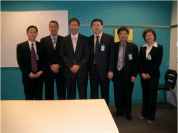 從左至右分別為華夏銀行工程師雷宏、GENESYS主管、澳新銀行客戶服務中心項目管理與運營經理Allan Hopson,華夏銀行網絡銀行部總經理黎清、華夏銀行個人業(yè)務部副總經理宋曉波、華夏銀行客戶服務中心經理彭凌