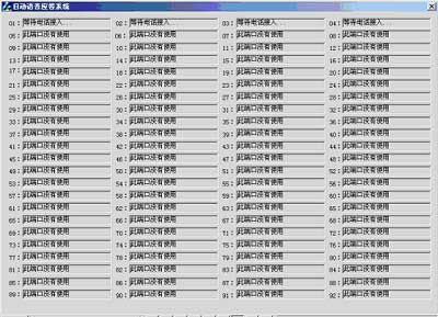 | 硬件配置 | 1、自動語音應答系統(tǒng): PC機或工控機(PIII800 CPU/256M內存/40G硬盤/)Dialogic模擬語音傳真卡(VFX/40ESC plus) Dialogic 座席卡(MSI/80SC) 2、人工座席系統(tǒng):聯(lián)想中高端商用電腦 3、數(shù)據(jù)庫系統(tǒng):聯(lián)想萬全工作組級和部門級服務器 |