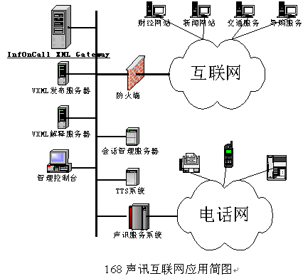 穎科VoiceXML技術(shù)成功應(yīng)用于遼寧電信168聲訊互聯(lián)網(wǎng)系統(tǒng),也是VoiceXML技術(shù)在國內(nèi)首次成功實(shí)現(xiàn)電信級(jí)應(yīng)用。在原有的聲訊平臺(tái)上,通過新添加的穎科VXML系統(tǒng),可以充分利用VoiceXML的優(yōu)勢,實(shí)現(xiàn)增值業(yè)務(wù)快速得開發(fā)、部署、和更改,借助IXG工具,能夠快速得開發(fā)出互聯(lián)網(wǎng)聲訊業(yè)務(wù)。
