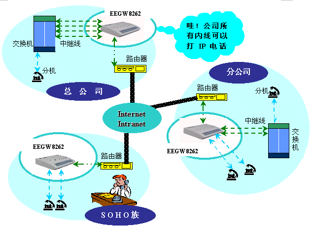 EEGW 8262 FXS根據(jù)國際電信組織ITU-T的H.323協(xié)議,提供語音及傳真在網(wǎng)際網(wǎng)絡(luò)上的服務(wù),只需一個IP地址及兩部電話機〈傳真機〉,即可享受VoIP的好處;適合住家型,SOHO族,及中小企業(yè)使用。