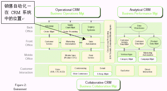 國(guó)外大型CRM廠家的產(chǎn)品線較長(zhǎng),往往包含銷(xiāo)售自動(dòng)化的模塊,如全球排名第一的CRM廠商Siebel 公司的產(chǎn)品線包括:銷(xiāo)售管理、市場(chǎng)、呼叫中心、客戶(hù)管理、合作伙伴管理、雇員管理、分析模塊等,CRM實(shí)施起來(lái)往往涉及到企業(yè)的各個(gè)環(huán)節(jié),銷(xiāo)售團(tuán)隊(duì)管理是其中重要的一部分。