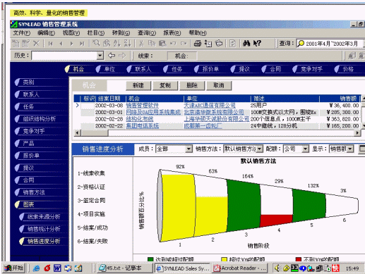 從99年由清華人創(chuàng)立的公司:致力于銷(xiāo)售型CRM軟件的開(kāi)發(fā),公司有較為全面的CRM理念體系,繼承了MBA的營(yíng)銷(xiāo)經(jīng)營(yíng)思路,以及OA的流程化處理思想。