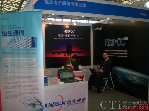 CTI論壇(ctiforum)11月20日消息(記者 張塵):近日,2009中國國際工業(yè)博覽會(huì)在上海新國際博覽中心隆重召開。恒生通信攜其自主知識(shí)產(chǎn)權(quán)的HSIPCC(Hundsun IP Callcenter,恒生IP呼叫中心)核心平臺(tái)亮相本屆工博會(huì)。受到了與會(huì)各界代表的廣泛關(guān)注。