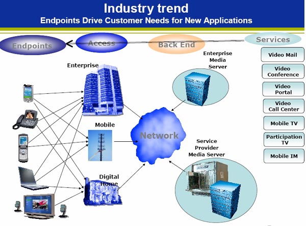 從英特爾獨(dú)立出來以后隨著業(yè)務(wù)重點(diǎn)的改變,Dialogic在自身的定位上也發(fā)生著變化。丁培江指出:“因為英特爾的重點(diǎn)是盡可能把處理器應(yīng)用到不同的平臺上。所以以前在英特爾我們關(guān)注的重點(diǎn)是如何在ATCA架構(gòu)上處理多媒體,獨(dú)立處理以后,我們傳統(tǒng)的媒體處理還沒有放棄,但由于3G的重點(diǎn)是應(yīng)用,所以我們的目標(biāo)是用我們產(chǎn)品幫助合作伙伴構(gòu)建基于3G的應(yīng)用,由于3G是逐步演進(jìn)的,所以一定有TDM和IP的接口,我們就解決如何跨接,如何用多媒體板卡來處理視頻,無線和IP。這是我們專注的地方,我們會陸續(xù)推出新產(chǎn)品來構(gòu)建面向3G的多媒體應(yīng)用。”
