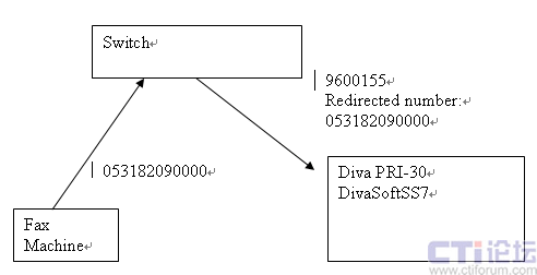 Dialogic Diva SS7傳真解決方案簡介:以往的傳真運營在處理接收傳真的時候都是通過提供一個接入平臺號(例如山東網(wǎng)通的商務新動力為9600155),然后通過語音提示輸入傳真信箱號。這樣做的缺點在于對于所有的客戶來說接入號碼都是統(tǒng)一的,不能滿足個性化需求。有一些客戶不想失去原有的傳真機號碼。希望網(wǎng)絡傳真系統(tǒng)能夠綁定他們原來的傳真?zhèn)髡鏅C號碼。例如某客戶原有的號碼是053182090000,通過號碼綁定,當其他用戶向他發(fā)傳真的時候,撥打的號碼是053182090000,但是此呼叫會被呼轉到9600155。傳真平臺根據(jù)原始被叫號來接收傳真。原有的基于PRI的解決方案不能解決原始被叫號的傳送問題,所以必須借助SS7網(wǎng)絡才能實現(xiàn)?蛻魮艽053182090000,呼叫被呼轉到9600155.在Redirected