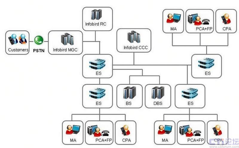 訊鳥于2007年初開始建設(shè)“啟通寶”呼叫中心平臺。該平臺的主體架構(gòu)由控制中心和媒體網(wǎng)關(guān)組成,其中在北京建設(shè)的控制中心類似于系統(tǒng)的“主大腦”,在上海、廣州等其他核心城市建設(shè)第二級的控制中心,類似于系統(tǒng)的“從大腦”?刂浦行牡墓δ苁枪芾砗涂刂,與企業(yè)客戶相連接。媒體網(wǎng)關(guān)類似于系統(tǒng)的“手腳”,其功能是采取行動,進行PSTN和IP網(wǎng)語音的轉(zhuǎn)換等處理。另外,各控制中心負責(zé)所屬區(qū)域的業(yè)務(wù),同時互為備份。比如,北京的控制中心平時負責(zé)華北的業(yè)務(wù),上海負責(zé)華東的業(yè)務(wù),深圳負責(zé)華南的業(yè)務(wù),一旦某一分中心發(fā)生故障或呼叫量超過額定處理能力時,異地分中心便能接管或分擔該分中心的業(yè)務(wù)。