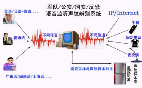 目前,犯罪分子、恐怖分子和間諜等的作案手段逐漸趨向高智能、高科技,為了逃避打擊,他們往往通過多種渠道進行通信,如手機、固定電話、公用電話等與同伙或者親友聯(lián)系,有些特殊的被監(jiān)控電話是公用電話甚至是中繼線,由于通話量大,而且大量的通話都與案件無關(guān),涉及到被控對象的通話只是其中一小部分。這樣,公安和安全部門的執(zhí)法人員只能整天守候在偵控終端旁,花費大量的時間和精力處理大量無用的語音信息,等候嫌疑人的出現(xiàn);這樣,公安人員只能整天守候在偵控終端旁,花費大量的時間和精力處理大量無用的語音信息,等候嫌疑人的出現(xiàn);而一些在逃的嫌疑人,經(jīng)常幾個月才往特定的目標處打一個電話,而且通話內(nèi)容又難以判斷,導(dǎo)致執(zhí)法人員很難分辨出嫌疑人的聲音。如何從大量的語音信息中提取嫌疑人的聲音,并更好地消除判別語音的過程中可能出現(xiàn)的人為誤差,從而提高對偵察對象身份識別的效率和準確率,為偵查辦案提供可靠的情報,提高辦案效率,是有關(guān)部門迫切需要解決的問題。