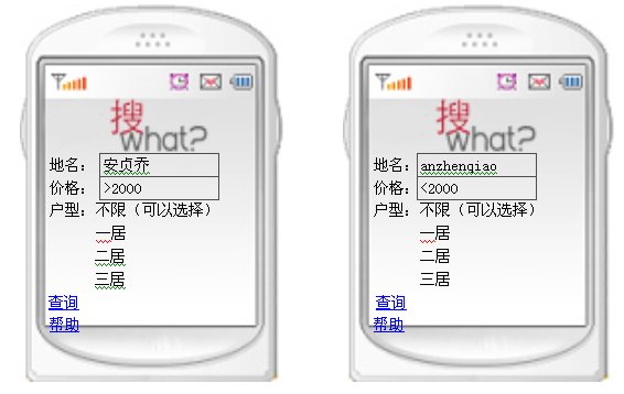 可智能識別用戶輸入的問題 和各種相關(guān)的說法, 如"1000起","2000以 下","西直門附近"等,并 能很容易增加各種語義規(guī)則 以支持更多、更靈活的輸入 |