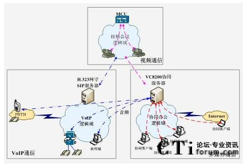 強(qiáng)大的系統(tǒng)融合能力:可以與傳統(tǒng)H.323的電視電話會議系統(tǒng)互通,以較低的成本把電視電話會議的音視頻延伸至基層;還可以與傳統(tǒng)的IP電話網(wǎng)融合,使用戶通過PSTN電話也能訪問協(xié)同服務(wù)器,隨時隨地實現(xiàn)音頻參加會議。