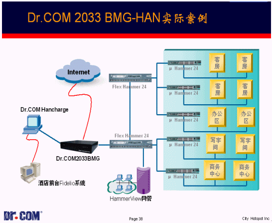 多增值服務(wù) 酒店作為集商務(wù)、娛樂(lè)于一身的場(chǎng)所,除了需要對(duì)來(lái)往的商務(wù)客人提供上網(wǎng)收發(fā)郵件、上網(wǎng)瀏覽等網(wǎng)絡(luò)服務(wù)外,還需要提供一些增值的網(wǎng)絡(luò)服務(wù)來(lái)提高酒店的檔次以吸引客人入住,例如VOD點(diǎn)播、在線游戲、旅游資訊服務(wù)等,這也需要這樣一套管理系統(tǒng)來(lái)保障及合理的控制和分配網(wǎng)絡(luò)資源,否則將阻礙酒店提供寬帶上網(wǎng)服務(wù)的發(fā)展。