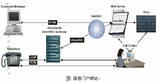 VoiceSoft先進(jìn)的技術(shù)可以將傳統(tǒng)的電力公司的網(wǎng)站改造為語(yǔ)音門戶網(wǎng)站,用戶既可以通過(guò)傳統(tǒng)的internet方式瀏覽電力公司網(wǎng)站,也可以通過(guò)電話撥入的方式獲得網(wǎng)站上的信息,使用網(wǎng)站上的功能,利用ASP的技術(shù),實(shí)現(xiàn)語(yǔ)音服務(wù)數(shù)據(jù)和網(wǎng)上瀏覽數(shù)據(jù)同步更新。