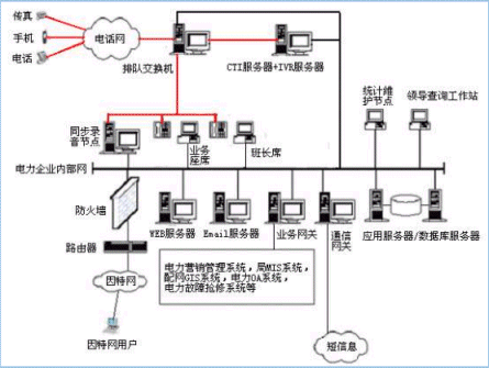 。。用戶利用電話、傳真、電子郵件、因特網(wǎng)、手機(jī)、網(wǎng)絡(luò)電話等撥打某一特服號(hào)碼(如95598)進(jìn)入電力多媒體客戶服務(wù)中心系統(tǒng),本系統(tǒng)依托電力企業(yè)各類業(yè)務(wù)技術(shù)支持系統(tǒng),通過(guò)人工受理或自動(dòng)語(yǔ)音服務(wù)等方式為各類客戶提供全天24小時(shí)不間斷的電力服務(wù);形成了對(duì)外服務(wù)于用戶的無(wú)形窗口,對(duì)內(nèi)管理、分析、決策系統(tǒng)相結(jié)合的新型客戶服務(wù)中心。