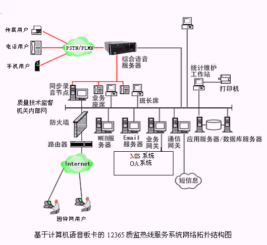 基于計算機語音板卡的12365質(zhì)監(jiān)熱線服務(wù)系統(tǒng)網(wǎng)絡(luò)拓?fù)浣Y(jié)構(gòu)圖