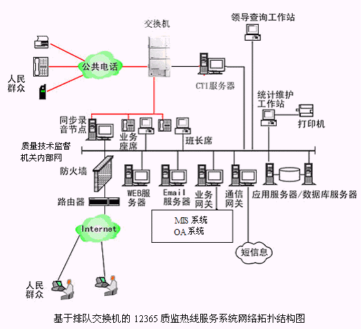 基于排隊交換機的12365質(zhì)監(jiān)熱線服務(wù)系統(tǒng)網(wǎng)絡(luò)拓?fù)浣Y(jié)構(gòu)圖