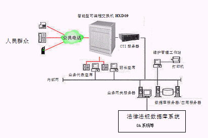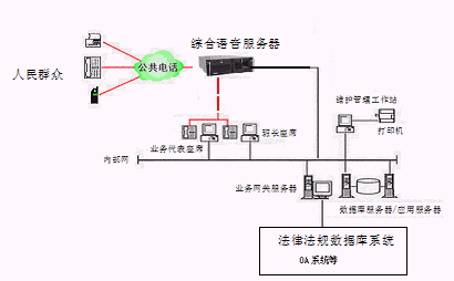 居民利用電話、傳真、手機(jī)等撥打某一特服號(hào)碼(如12348)進(jìn)入地級(jí)市法律服務(wù)熱線系統(tǒng),本系統(tǒng)依托地級(jí)市司法行政部門/法院各類業(yè)務(wù)技術(shù)支持系統(tǒng)和網(wǎng)絡(luò)系統(tǒng),通過人工受理或自動(dòng)語音服務(wù)等方式全天24小時(shí)不間斷地為人民群眾提供各種法律服務(wù);形成了對(duì)外服務(wù)于百姓的無形窗口,對(duì)內(nèi)管理、分析、決策系統(tǒng)相結(jié)合的多媒體呼叫中心。