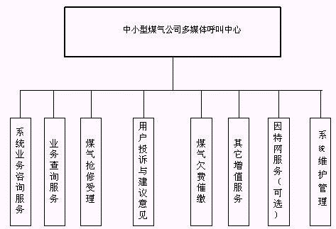 客戶利用電話、手機等撥打某一特服號碼(如9xxxx)進入中小型煤氣公司多媒體呼叫中心系統(tǒng),本系統(tǒng)依托煤氣公司各類業(yè)務(wù)技術(shù)支持系統(tǒng)和網(wǎng)絡(luò)系統(tǒng),通過人工受理或自動語音服務(wù)等方式全天24小時不間斷地為客戶提供各種服務(wù)。