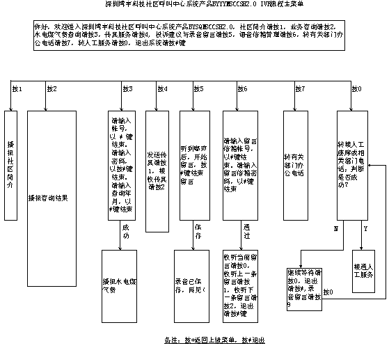 深圳博宇科技社區(qū)呼叫中心系統(tǒng)產(chǎn)品BYSQMSCCSH2.0 IVR流程主菜單如下(請(qǐng)放大到150%瀏覽):