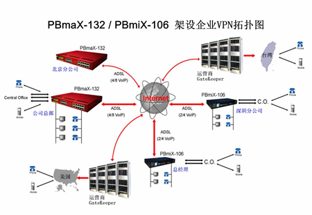 對于具有多個(gè)分支機(jī)構(gòu)的公司,PBmaX/PBmiX系列IP-PBX能夠通過內(nèi)建的VoIP通道將各分支機(jī)構(gòu)連接起來。使撥打遠(yuǎn)程分機(jī)如同撥打本地分機(jī) 一樣簡單,且無需支付任何長話費(fèi)用。