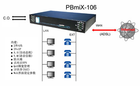 在21世紀(jì)的今日,隨著網(wǎng)絡(luò)應(yīng)用的普及,無論是個(gè)人或企業(yè)對于交換機(jī)的觀念若仍拘泥于傳統(tǒng)的思維,將是落伍的。免費(fèi)網(wǎng)絡(luò)電話、分散式系統(tǒng),將是傳統(tǒng)交換機(jī) 在增加語音信箱/自動總機(jī)功能之后,系統(tǒng)機(jī)制的重大變革。本公司推出的PBmaX/PBmiX系列IP-PBX,不但將上述所有功能整合于一體,進(jìn)一步可內(nèi)建公司VPN、Web服務(wù)器、GateKeeper等功能,呈現(xiàn)出數(shù)字交換機(jī)的全新風(fēng)貌,并將新的電話使用觀念帶進(jìn)企業(yè)、SOHO辦公室與家庭內(nèi)。