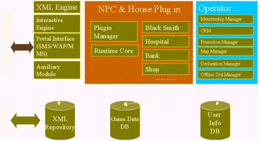 基于上述的因素,北京市萬(wàn)隆然博科技有限責(zé)任公司率先在國(guó)內(nèi)推出了無(wú)線互連游戲平臺(tái),把游戲的快速開發(fā)、游戲的運(yùn)行引擎和游戲的客戶服務(wù)管理集成在一體。方便了短訊運(yùn)營(yíng)商的運(yùn)營(yíng)。同時(shí),然博科技通過分析各類游戲的特點(diǎn)和無(wú)線交互方式的特點(diǎn)。具有獨(dú)創(chuàng)性的推出了一種游戲描述XML格式。通過然博科技提供的離線工具,游戲策劃人可以自己編寫腳本,自己定義場(chǎng)景,進(jìn)行仿真。同時(shí),上傳到實(shí)際運(yùn)行的服務(wù)器端。真正的實(shí)現(xiàn)了短信門戶的個(gè)人創(chuàng)作工具。使得短信門戶真正的可以與傳統(tǒng)的Web門戶有相同的運(yùn)營(yíng)模式。ICP可以通過出賣短信服務(wù)器的硬盤空間來(lái)實(shí)現(xiàn)與內(nèi)容宿主共同盈利的模式。