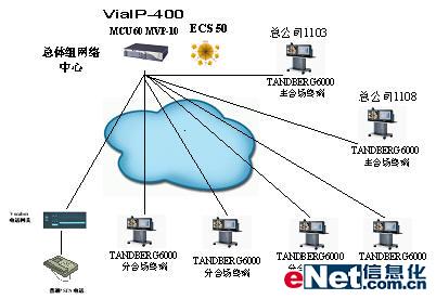 整個網(wǎng)絡(luò)以上?偛繛楹诵模黄陧椖拷ㄔO(shè)包括含主會場在內(nèi)的27分支網(wǎng)點,應(yīng)用的主要是TANDBERG公司的TANDBERG 6000型產(chǎn)品。二期項目還要擴容。