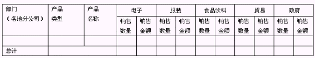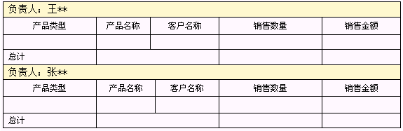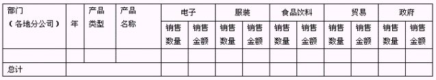 作為分公司銷售經理,需要查看分公司每個銷售員的銷量統(tǒng)計,便于向銷售總監(jiān)做好匯報,需要同時知道不同產品類型的銷量。可以通過分組報表來實現,如下圖: