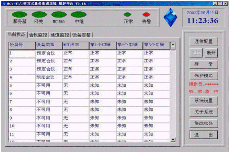 狀態(tài)監(jiān)視:會議秘書可以監(jiān)視每個會議成員的當前狀態(tài)。如:空閑、呼叫遇忙、正在振鈴、取機應答、呼入等待、正在通話等狀態(tài)。各種狀態(tài)以不同的顏色顯示在會議控制臺上。
