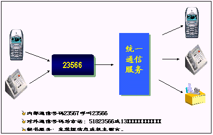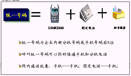 鐵路內(nèi)部員工可以統(tǒng)一所有的通信工具,只使用一個號碼,一次呼叫便可以完成通信,使通信更加簡單、可靠?梢詫(shí)現(xiàn)換機(jī)換網(wǎng)不換號,用戶獲得一個終身的聯(lián)系號碼,用戶無論更換任何通信工具,聯(lián)系號碼和方式不會改變。例如:在路局領(lǐng)導(dǎo)找下屬的時候,只需要撥打他的統(tǒng)一號碼,便可以直接找到他。不必考慮他是否在外出還是在辦公室,是否更換了手機(jī)號碼。統(tǒng)一號碼就像他員工號碼,始終不變,即撥即通!